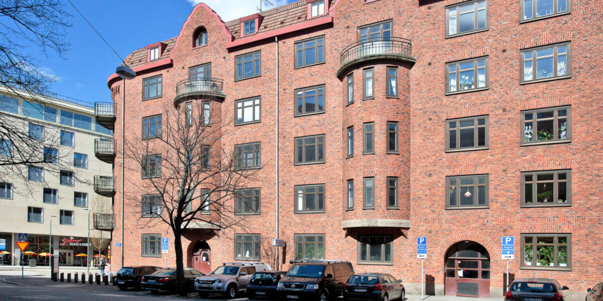 Den inrymmer 35 lägenheter och två verksamhetslokaler. Tegelfasad mot gatan och putsfasad mot gården. Många av lägenheterna har balkong och hög takhöjd. Trevligt läge med många restauranger i närområdet. Alexanderssons har ägt och förvaltat byggnaden sedan oktober 2015.