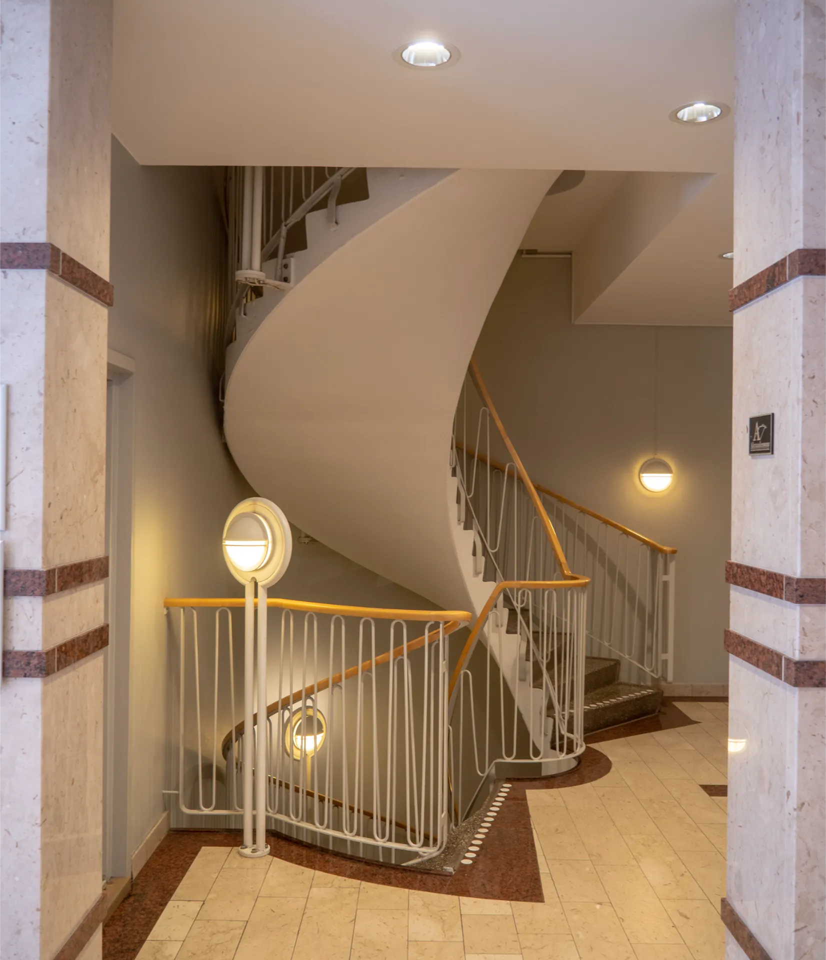 Kommunikationerna hit är utmärkta. Alldeles intill ligger spårvagnshållplatsen och i källarplan finns 80 garageplatser.